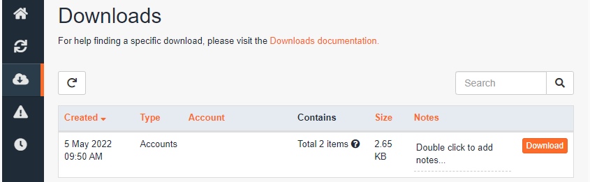 Pulsando en el botón Download al lado de la fila en cuestión, se iniciaría la descarga de forma normal.